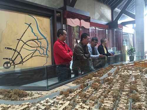 25日上午,肖厚忠董事长又应邀参观了金堂中国会馆项目。中新悦蓉董事长甄志军,首席设计师何亚雄分别向肖厚忠董事长介绍了项目的建筑风格及设计理念。