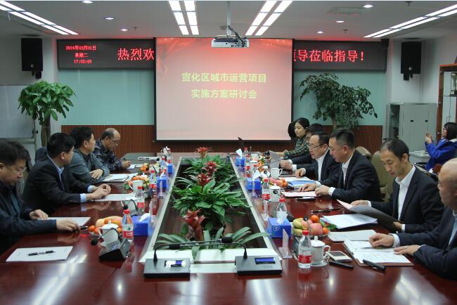 集团副总裁张峰主持汇报了宣化区城市运营项目实施方案,主要内容有:高铁新城开发项目、棚户区改造建设项目、宣化区PPP项目(体育场馆、停车场、市政道路﹚、古城遗址保护建设工程、历史文化街区保护与更新建设项目、宣化生物质发电厂建设项目、京冀蒙农产品物流集散中心建设项目、京冀蒙国际商品保税交易中心建设项目、宣化区玉米深加工产业园区建设项目、宣化国际医疗救助中心建设项目、国家环保工业园建设项目、中德合作促进性贷款项目、宣化国际航空医学救援基地和三甲综合医院建设项目等。