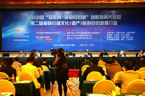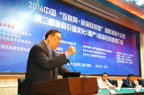 本网讯 2016年4月28-30日,由中国文物保护基金会、中国旅游报社和新华社手机电视台共同主办的“2016中国互联网+旅游目的地创新发展大会暨第二届最具价值文化(遗产)遗产旅游目的地推介会”在重庆金佛山-神龙峡景区隆重举办。本次活动由bv伟德国际1946股份有限公司、中国民族建筑研究会等单位的大力支持,相关领导、主办方领导、来自各界嘉宾、新闻媒体朋友和各地与会代表共120余人参会。