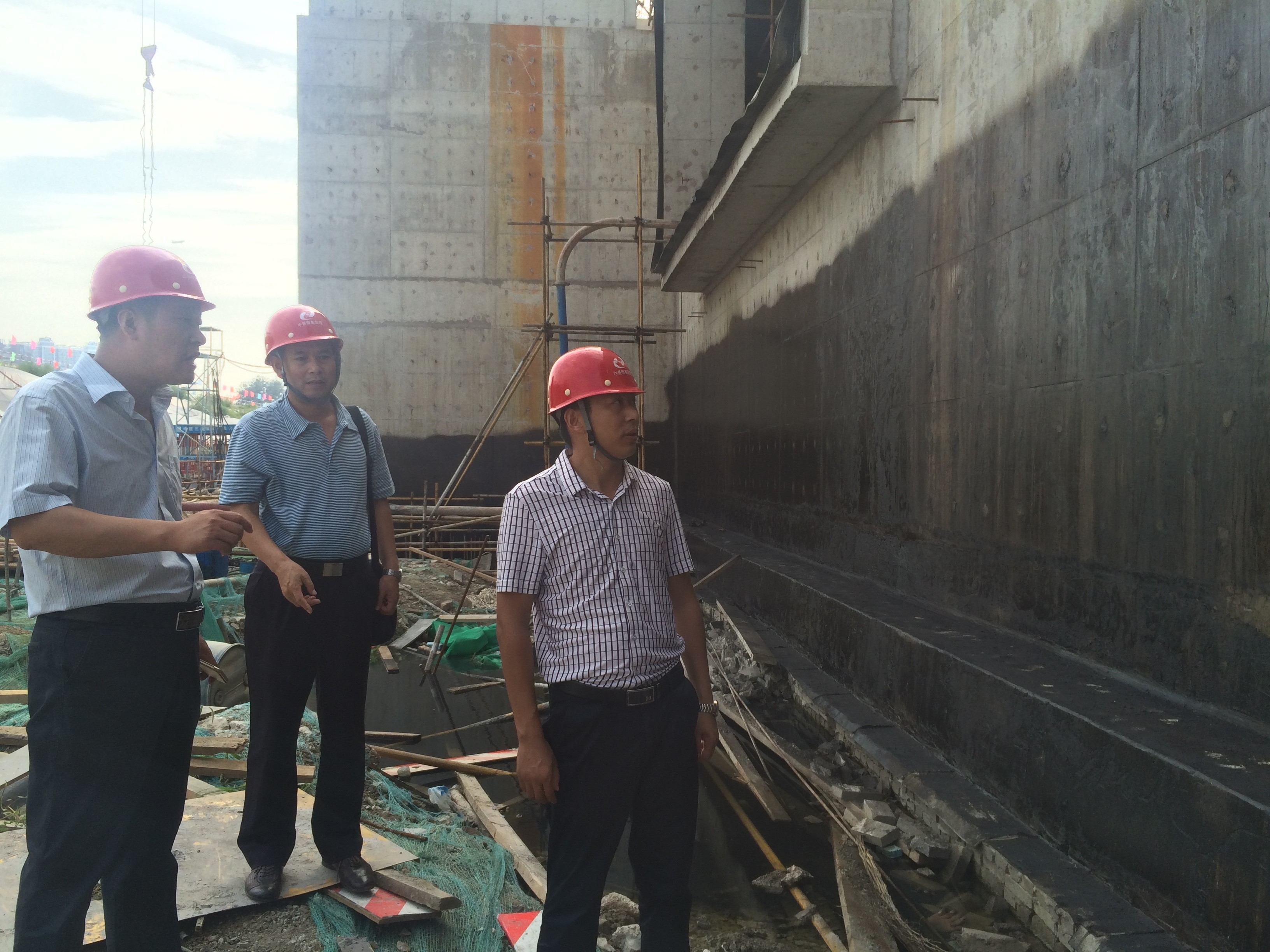本项目于2015年3月1日开工,目前主体结构已封顶,外墙卷材防水施工完成50%,正准备二次结构施工。检查期间,王国伟和曲景旭两位经理高度评价了项目部监理工作的成绩,同时叮嘱,目前主体结构已封顶,将进行大量设备安装等各专业分包施工,监理部一定要做好预控工作,一如既往的为建设单位把好关,站好岗。