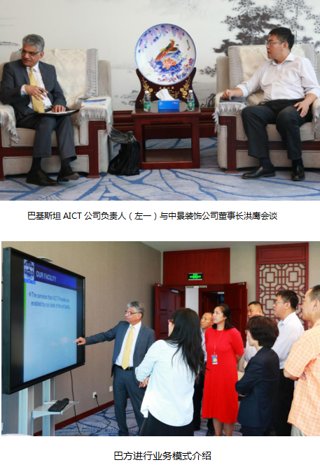 巴基斯坦AICT公司是中景装饰公司巴基斯坦项目清关业务代理公司,北京海龙国际运输代理有限公司是该项目国内报关业务代理公司,针对目前该项目材料出口物流中存在的问题,装饰公司组织清关、报关公司共同商谈,理顺了三方合作的业务模式,同时也与AICT公司达成了进一步深度合作的意向。