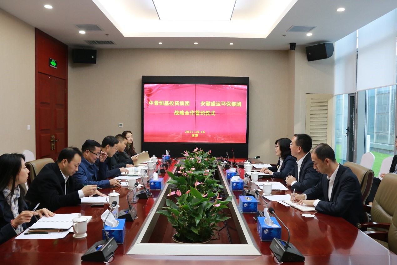 2017年10月16日,安徽盛运环保集团董事长开晓胜,副总裁、项目开发管控中心总经理蒋永明等领导一行莅临bv伟德国际1946。bv伟德国际1946董事长肖厚忠,总裁张睿,副总裁蔡菊等相关领导出席了会议。双方重点就循环经济产业园区项目、城乡一体化项目、智慧环卫项目、基础设施建设项目以及投融资等方面展开了深入交流并达成共识与合作。