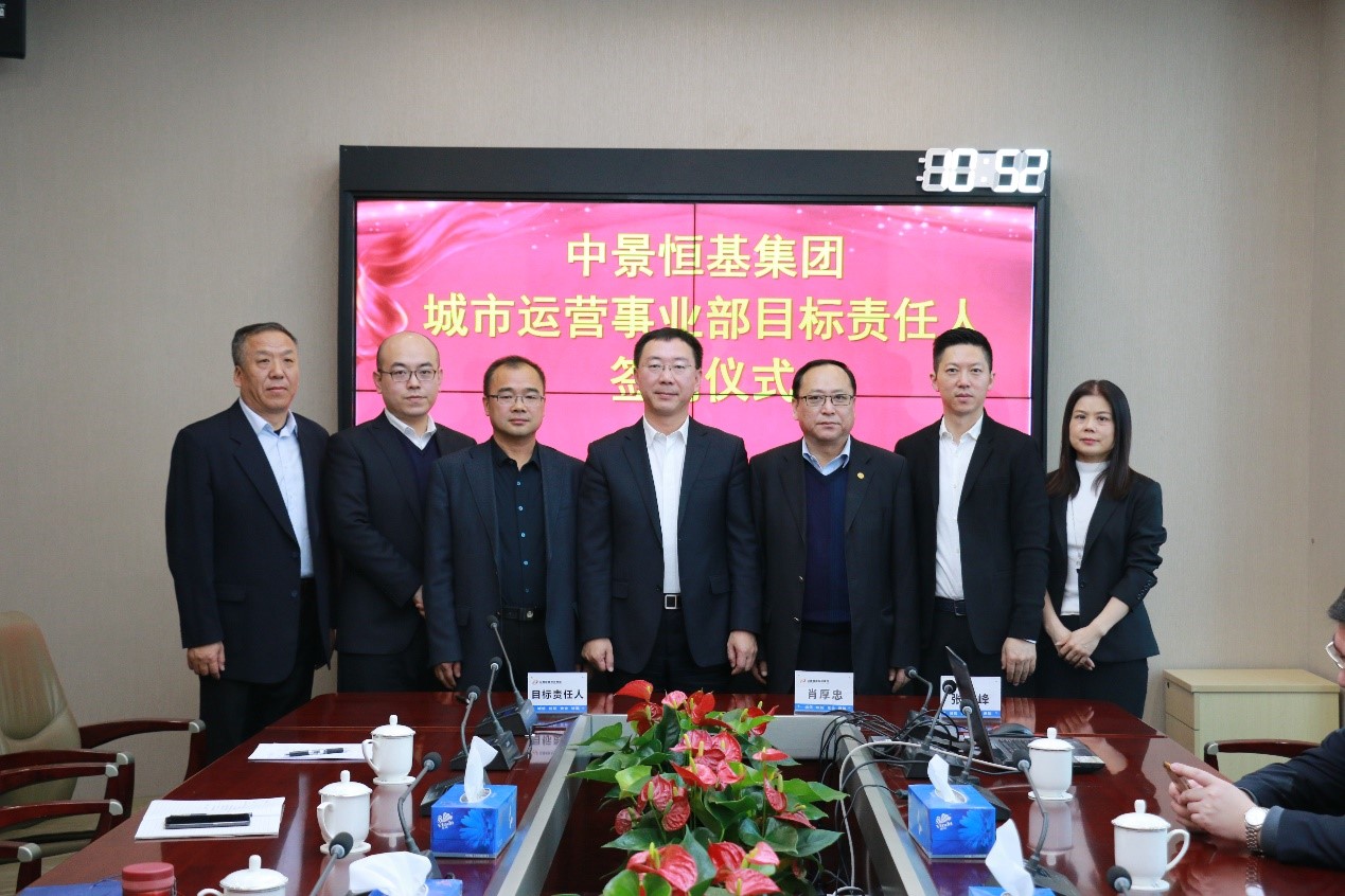 2018年3月6日,城市运营事业部经营目标签约仪式在集团视频会议室召开,肖厚忠董事长率领集团领导、各部门负责人及经营目标责任人及参加了此次会议。会议聚焦“同心同路、共创共享”的主题,这不仅仅是一次经营目标签约仪式,更是新时代背景下一次战场集结和沙场点兵,立足当下,展望2018年以及更远大的未来,运筹帷幄、决胜千里。