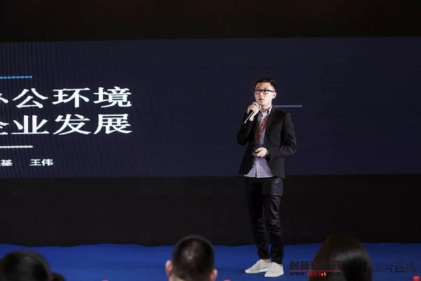 此次大会,bv伟德国际1946装饰总经理助理王伟以“关注办公环境•布局企业发展”为主题发表了演讲。他首先以保守、死板、空间窄小的老式办公区与工位灵活、环境优美、电子设备齐全的现代化智能办公场所做对比,通过实际案例和数据分析向在座各位嘉宾传达了“办公环境对于企业发展和员工培养十分重要”这一理念,得到在座嘉宾的一致认同,收获众多掌声。