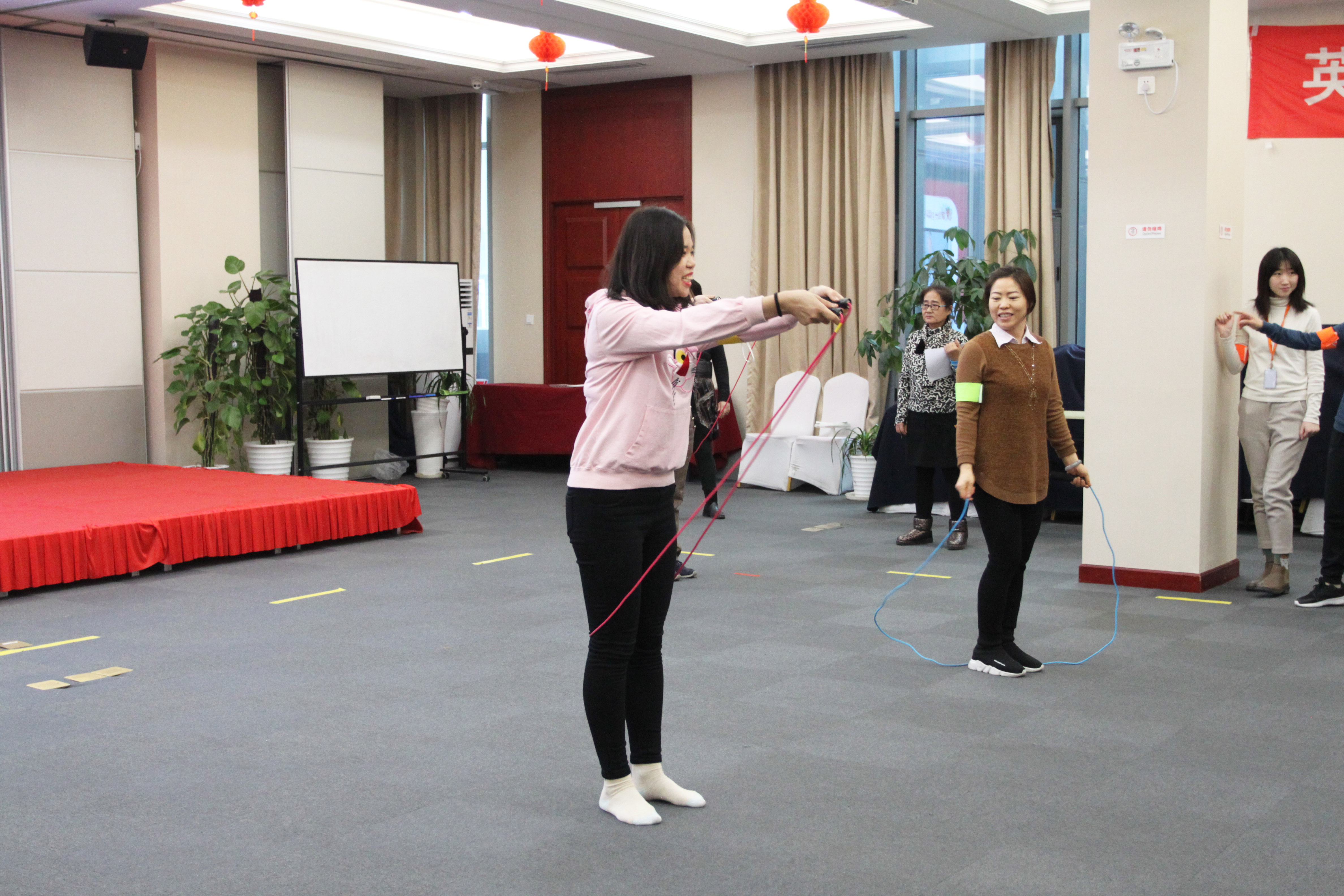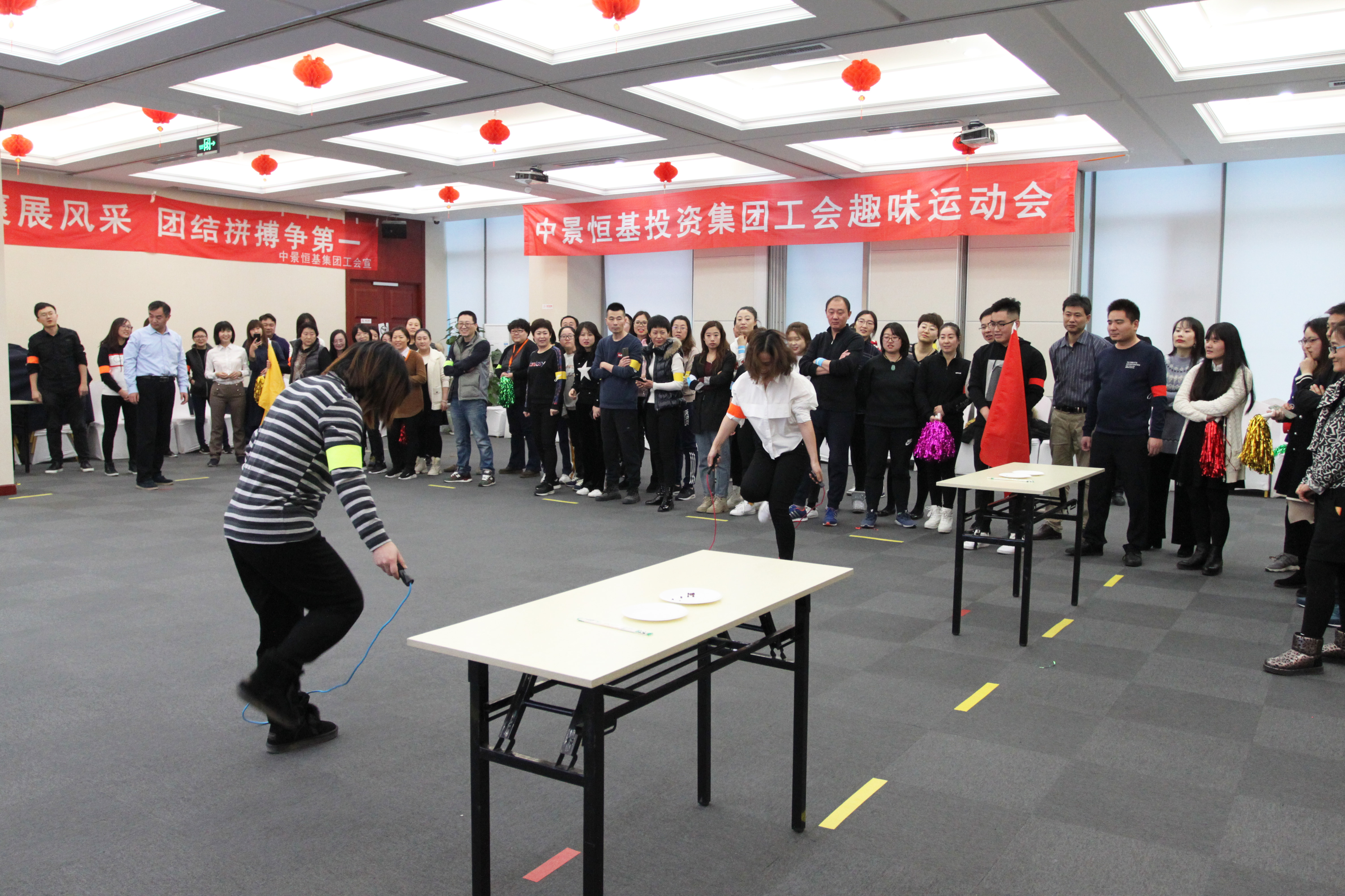 运动会包括团队跳绳、往返接力跑、搭桥过河、电动小马达和囤面粉哪家强共五个团体项目,运动员们勇于挑战自我,团结拼搏,竞争十分激烈,赛程历时近3小时。